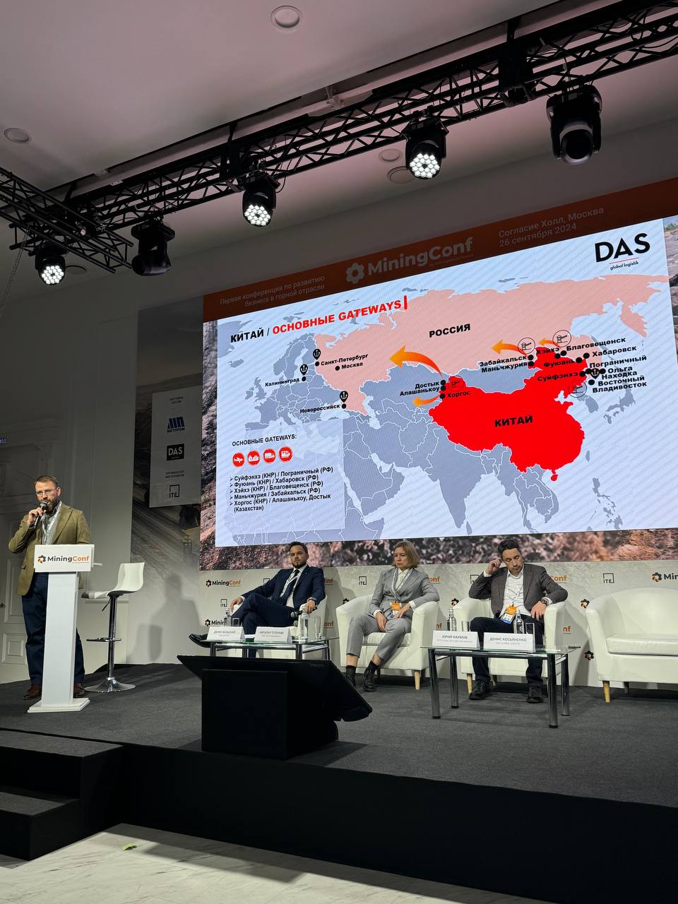 На конференцию MiningConf-2024 DAS GLOBAL LOGISTIK пригласили в качестве партнера сессии «Извлекаем прибыль: Большие Proдажи в горе». Сотрудники компании выступили с докладом для более 200 ведущих экспертов и представителей горнодобывающих компаний, специалистов по развитию бизнеса и продажам.